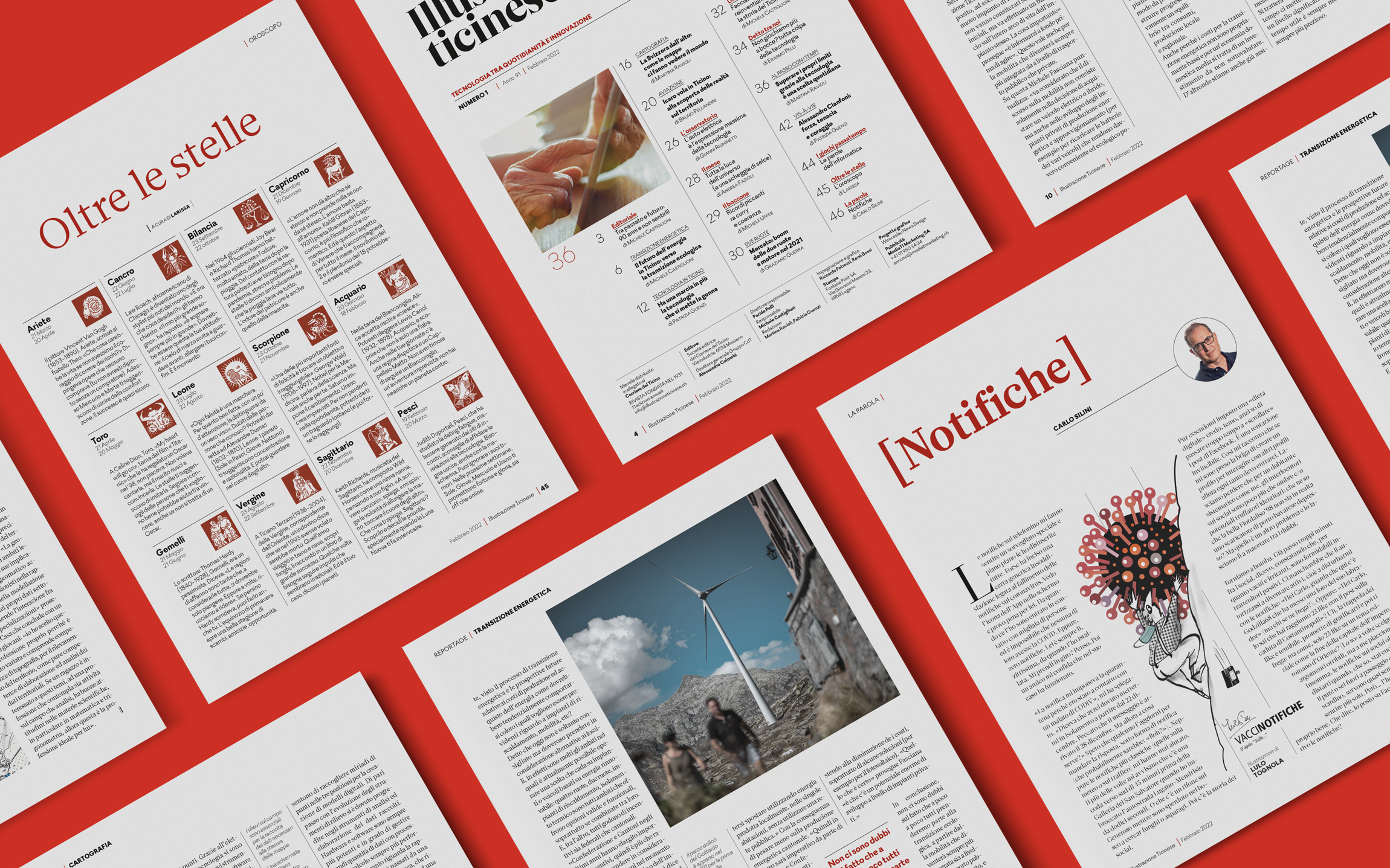 Con el estudio Wenceslau participé en el rediseño de la nueva Illustrazione Ticinese, histórica revista mensual del Cantón del Tesino y punto de referencia cultural y social para la Suiza italiana. Con artículos, reportajes, fotografías y secciones, la publicación narra la actualidad, las tradiciones y los protagonistas de la vida del cantón, manteniendo un estilo divulgativo y accesible que entrelaza información, cultura y memoria del territorio.