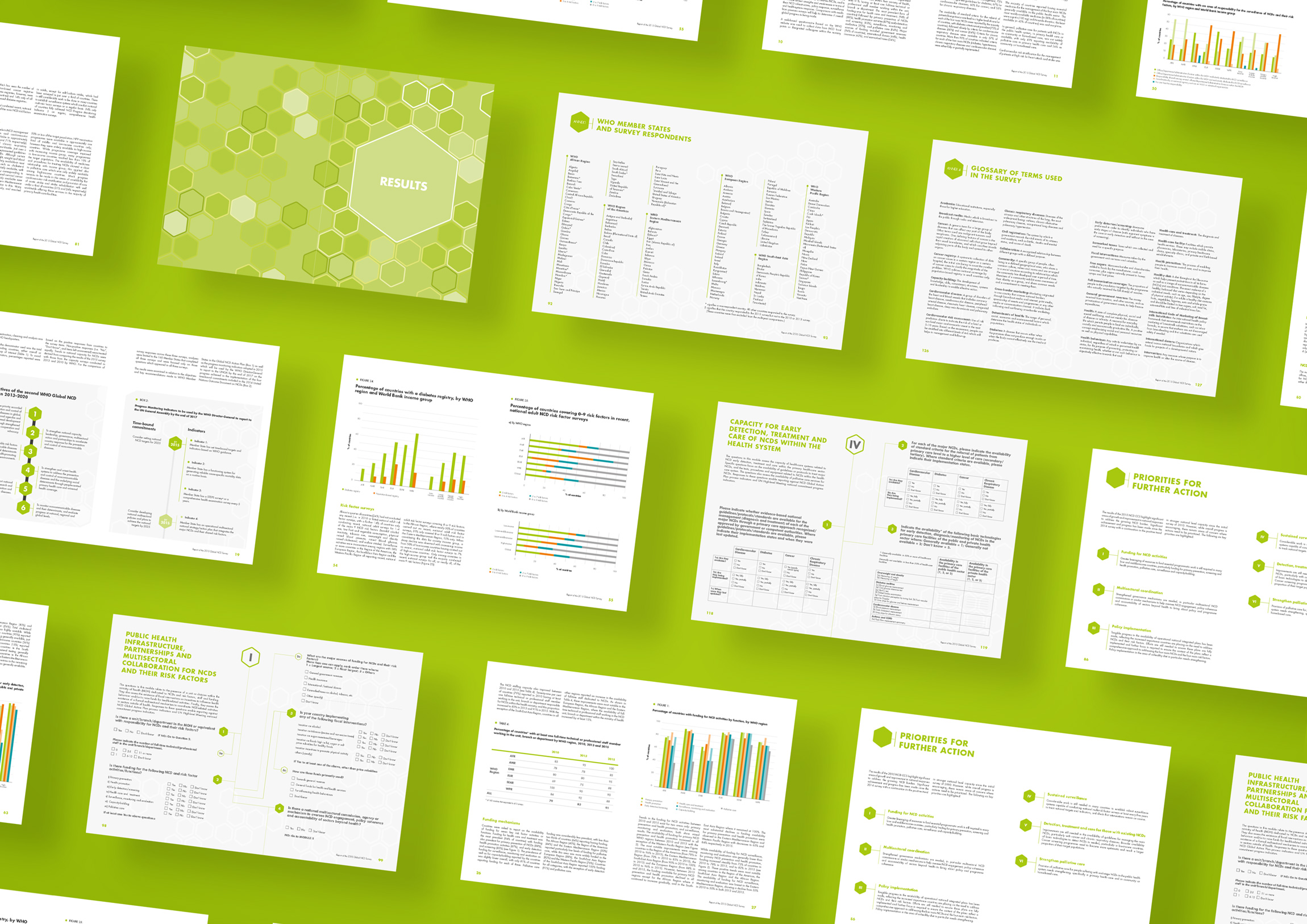 Para este proyecto, la Organización Mundial de la Salud encargó a la agencia Blossom el diseño gráfico de su informe global, con el objetivo de hacer que los contenidos fueran más claros, legibles y accesibles.