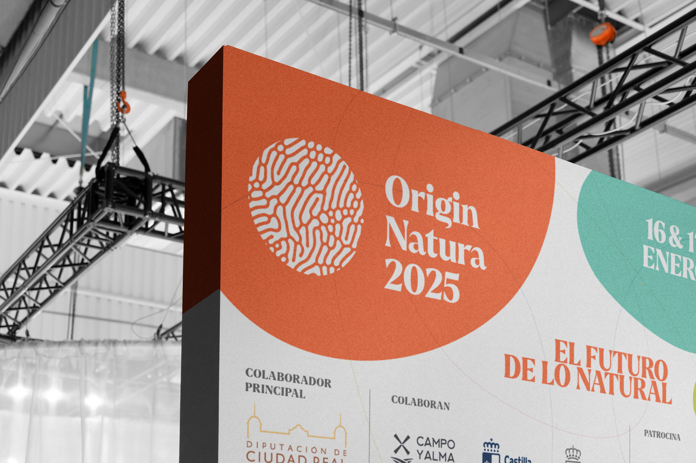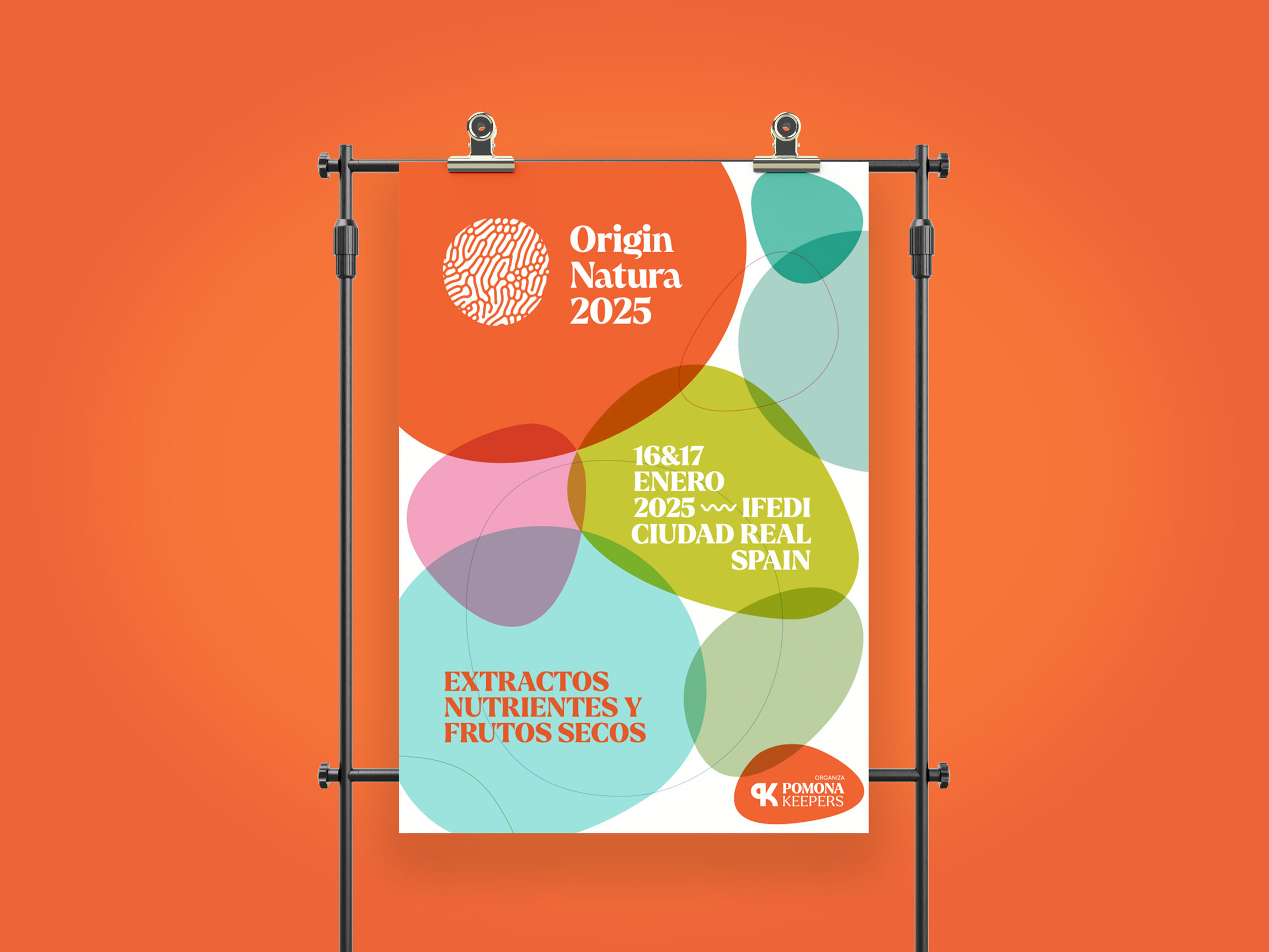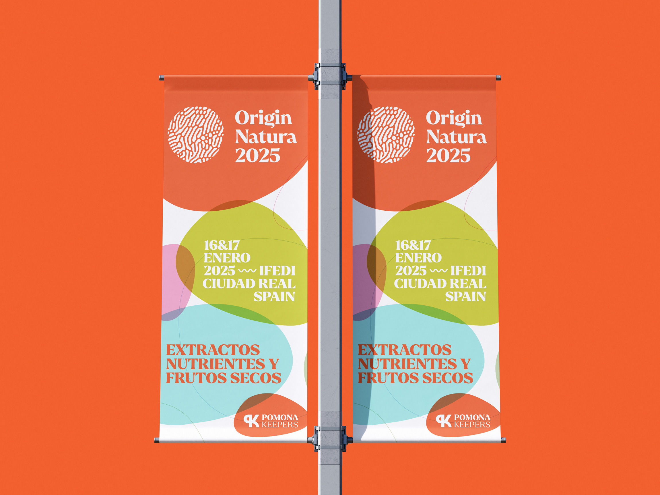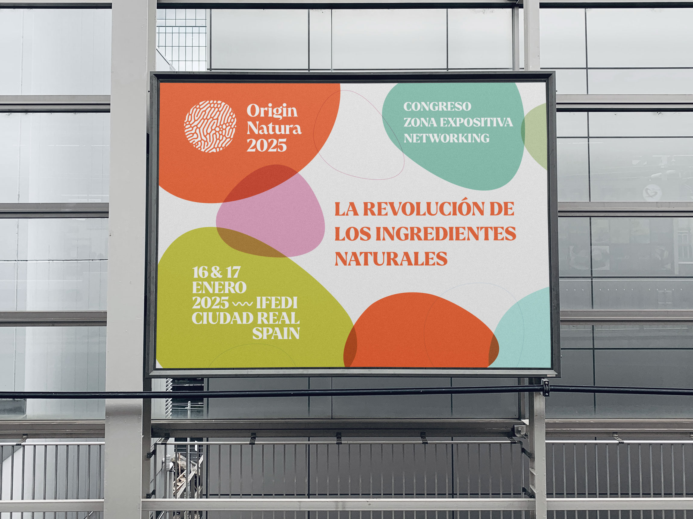 Origin Natura 2025 es una feria internacional dedicada a los ingredientes naturales, extractos y frutos secos, que se celebrará en Ciudad Real los días 16 y 17 de enero. Un evento que pone el foco en la innovación dentro del sector natural, con la participación de más de 60 expertos y una red internacional de operadores. Para esta primera edición, se me encargó la adaptación gráfica de toda la cartelería y los materiales de comunicación de la feria.