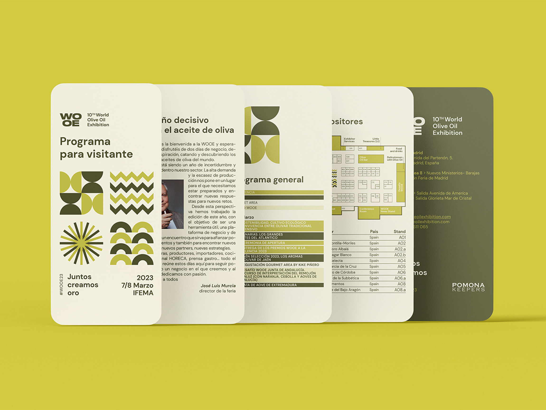Pomona Keepers me ha encargado la realización de toda la cartelería y la comunicación digital para la World Olive Oil Exhibition (WOOE), la mayor feria monográfica del mundo dedicada exclusivamente al aceite de oliva. El evento reúne a más de 300 productores, distribuidores y compradores de 45 países, con el objetivo de promover el comercio, la innovación y la cultura del aceite, ofreciendo un punto de encuentro único para los profesionales del sector.